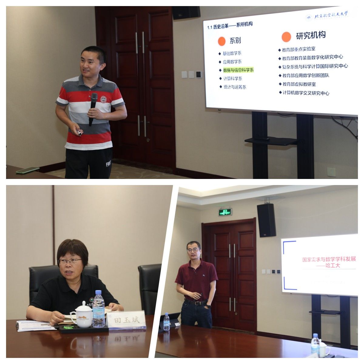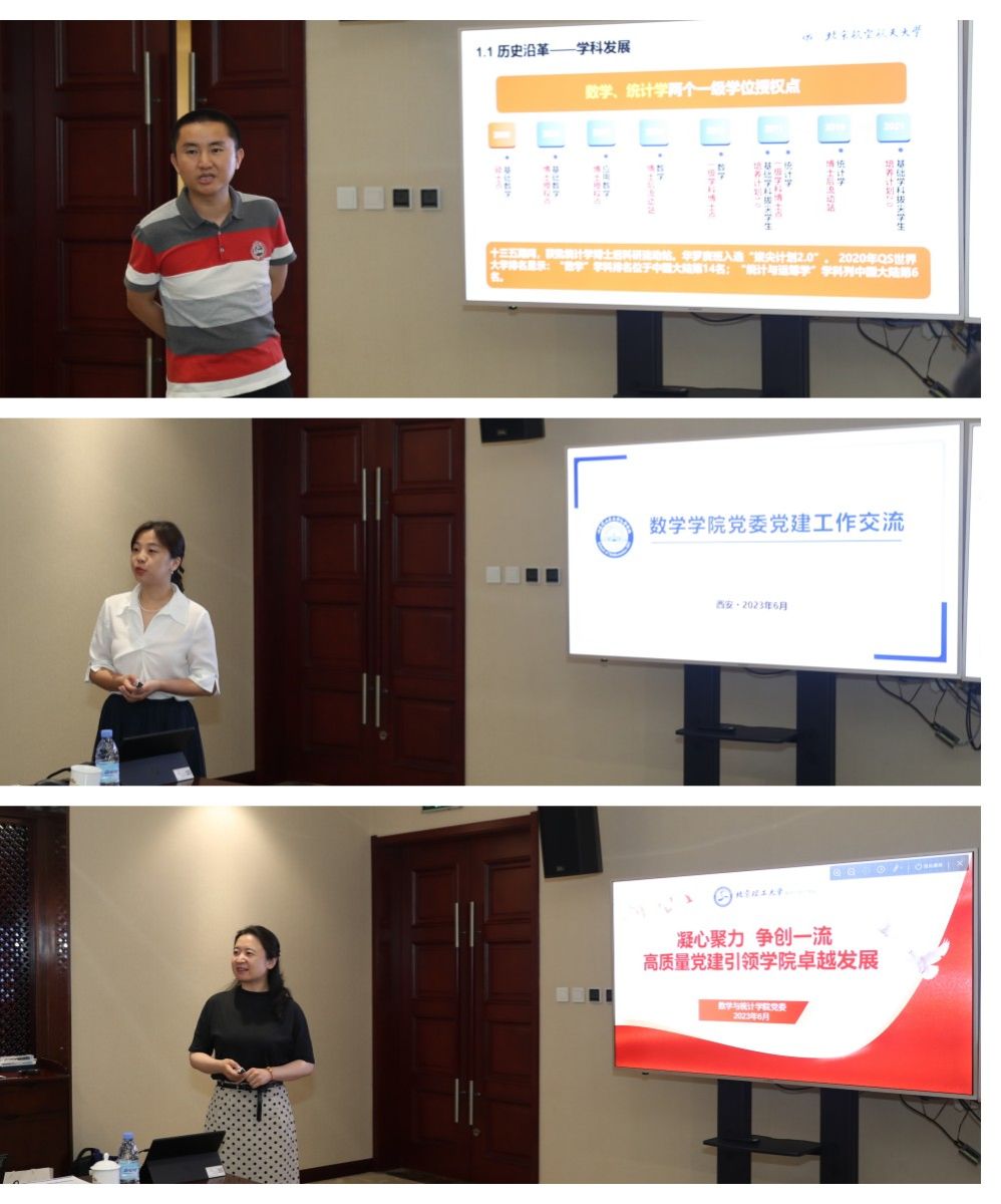 随后,部属七所高校数学公司相关负责人分别围绕《以高质量党建引领和推动公司高质量发展》《国家需求与数学学科特色发展》主题进行了汇报交流。北京航空航天大学数学科学公司在党建工作中形成的“夯基础、促改革、做党建研究”的工作思路,在学科发展工作中提出的“大数学”立体化数学人才培养体系的建立;北京理工大学betway西汉姆联平台在党建工作中形成的“三确保、两提升、一促进”的工作理念,在学科发展工作中提出的对硬核基础数学队伍的培养方式;哈尔滨工业大学数学公司在党建工作中提出的打造“金牌专业、金牌课程、金牌教师”,实现“出成果、出名师、出人才”的公司奋斗目标,在学科发展工作中提出的“三个对标”的科学研究发展策略;哈尔滨工程大学数学科学公司在党建工作中提出的“四转型”工作思路及举措,在学科发展工作中推行的“六计划”重点举措;南京航空航天大学数学公司以“四融”党建推动公司高质量发展的工作思路,在学科发展工作中打造的“一体两翼双助力”的发展体系;南京理工大学betway西汉姆联平台形成的“三开三共”的党建工作理念和“三融三聚”的党建工作思路,在学科发展工作中推行的创新发展思路以及公司betway西汉姆联平台在党建工作中“1745”发展思路,在学科发展工作中提出的“数学+”“+数学”的创新人才培养模式。一个个创新思路与特色做法,取得的突出成绩和亮眼结果,各公司发展工作中遇到的共性问题以及解决措施,使得此次研讨会既开拓思路又发人深省,与会同志们均表示收获满满,取得良好的效果。