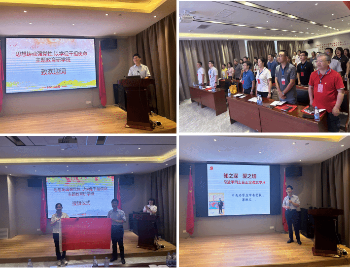 8月21日下午,在教学基地举行专题培训开班仪式,物理科学与技术公司党委书记晁小荣作动员讲话,他表示全体学员要珍惜学习机会,在新时代的赶考之路中建功立业。通过学习,进一步解放思想、统一认识,深刻领悟西柏坡精神的丰富内涵,这次重点围绕“西柏坡精神”是什么、为什么要学习“西柏坡精神”、如何践行“西柏坡精神”三大问题进行学习,通过重温革命历史,不断锤炼党性,提高能力,走好新时代赶考路,为开创教育工作新局面再建新功。随后,中共石家庄市委党校公务员能力建设研究部主任梁胜文教授致欢迎辞,并向培训班授旗,生命公司党委书记牟蕾代表培训班全体学员接旗。最后,梁胜文教授讲授了《知之深 爱之切——学习习近平在正定的岁月》专题党课,梁教授的讲解思想深邃、深入浅出、案例丰富,具有很强的理论性和指导性。全体学员跟随梁教授的讲解,追寻习近平总书记正定足迹,探寻习近平总书记施政思想的起源和初心足迹,使全体党员进一步深化了对习近平新时代中国特色社会主义思想丰富内涵及其形成脉络的认识。