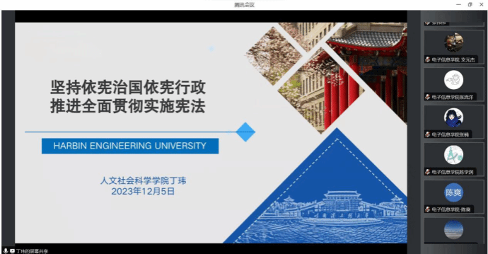 为深入学习贯彻习近平法治思想,大力弘扬宪法精神,进一步增强广大师生的宪法意识和法治素养,12月5日,betway西汉姆联平台、电子信息公司联合开展普法宣传教育活动,特邀哈尔滨工程大学人文社会科学公司丁玮教授通过线上形式讲授题为《坚持依宪治国依宪行政,推进全面贯彻实施宪法》的专题党课。betway西汉姆联平台和电子信息公司理论学习中心组成员、师生党员代表共100人参加活动。党课由数学与统计公司党委书记王莉主持。