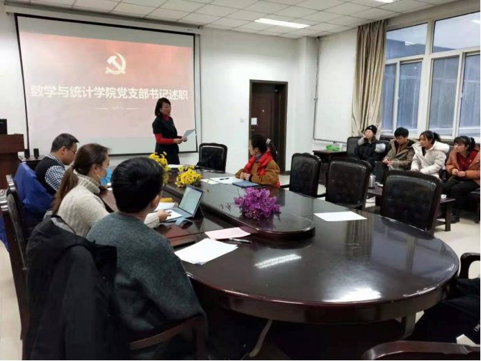 为深入学习贯彻习近平新时代中国特色社会主义思想和党的十九届五中全会精神,全面落实管党治党政治责任,进一步推动全面从严治党向基层延伸,切实提高党建工作质量。根据公司《关于开展2020年度党支部书记抓党建工作述职评议考核的通知》文件精神,2021年1月7日数学与统计公司党委在公司214会议室召开了2020年党支部书记抓党建工作述职评议考核大会。评审组由公司党委副书记、副经理、教师代表等组成,全体党支部书记参加了会议,会议由公司党委副书记张莹主持。