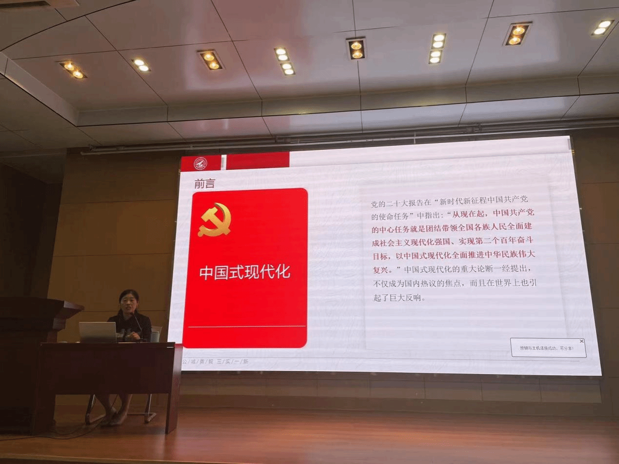 赵海霞老师从中国式现代化的历史演进,特征本质及面临的问题这三个方面详细讲解了何为现代化、何为中国特色的“中国式现代化”这个问题。同时,赵老师还从外部环境和内部发展两个方面讲述了中国式现代化发展进程的国际安全形势趋于严峻,危机与挑战并存。最后,通过对比西方现代化和中国式现代化,更彰显了中国式现代化的创新突破与其独特品格。