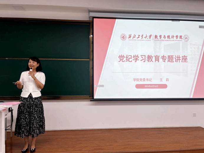 为深入学习领会习近平总书记关于全面加强党的纪律建设的重要论述,从理论源头加深对党的纪律规矩的理解和把握,6月26日,数学与统计公司党委书记王莉为全院教职工讲授专题党课,解读新修订的《中国共产党纪律处分条例》。