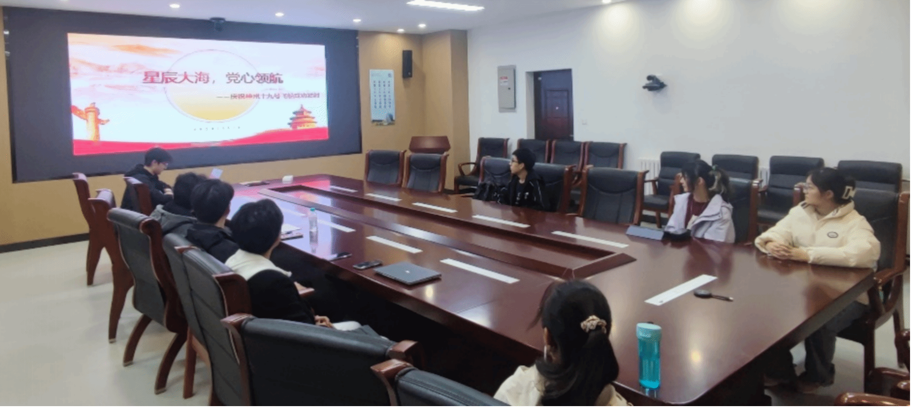 为深刻领悟中国载人航天事业的辉煌成就和伟大精神,11月2日晚,本科生高年级第一党支部在理公司201会议室组织开展了“星辰大海,党心领航”、 庆祝神州十九号载人飞船发射成功主题党日活动。本次活动由党支部书记孔维骏同志主持,支部全体党员共同参与。