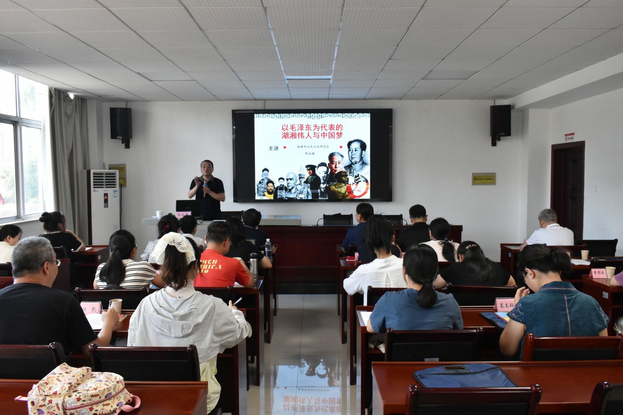 王莉在培训班开班仪式的动员讲话中提纲挈领地明确了此次教育培训的目的与意义,旨在追寻红色足迹,重温革命历史,接受党性教育,传承革命精神。中共湘潭县委党校副董事长王耀,以《深入学习贯彻中央八项规定精神,持续加强党的作风建设》为题讲授专题党课,紧扣新时代全面从严治党要求,为学员们划出纪律“红线”。陈泳播教授为全体学员讲授了《以毛泽东为代表的湖湘伟人与中国梦》的专题党课,详细介绍了近现代史上湖湘地区的一代代优秀前辈们在追寻国家独立、民族解放之路上所做的艰辛探索和不懈努力,并详细阐述了毛泽东思想和以毛泽东为代表的共产党人对中国革命的影响,以及共产党人追寻中国梦的伟大历程。