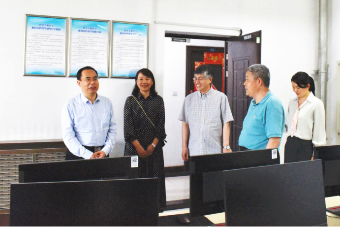 程基伟一行首先参观了公司数学实验教学中心并行计算实验室、图形工作站高性能计算实验室。随后开展座谈,会上聂玉峰汇报了公司基本情况以及公司近期在人才培养、科学研究、国际合作等方面的工作推进情况,王莉从党委概况、党管人才工作等方面汇报了公司党组织建设情况。在之后的交流座谈中,各党支部书记依次介绍了支部情况。
