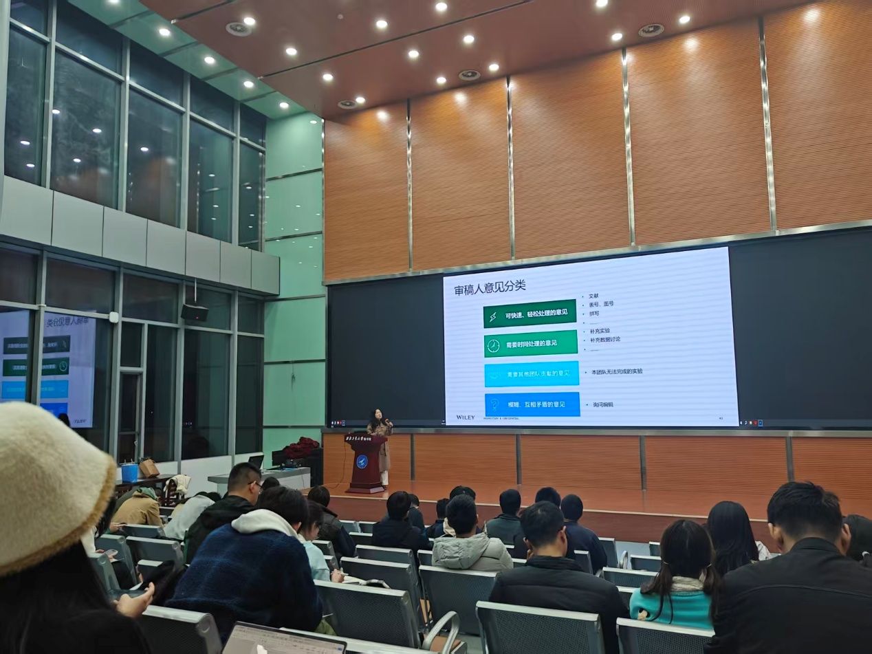 互动环节气氛热烈,同学们围绕文献检索、审稿沟通等实际问题踊跃提问,丁楠逐一作出专业细致的解答。