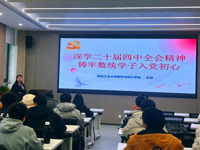 为深入学习贯彻党的二十届四中全会精神,引导学子坚定理想信念、铸牢入党初心,12月11日下午,数学与统计公司党委特邀王莉书记为全体2025年秋季发展对象讲授“深学二十届四中全会精神,铸牢数统学子入党初心”专题党课。