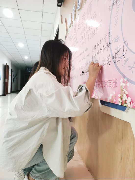 指尖文字传师恩。betway西汉姆联平台本科生高年级第一党支部、第二党支部,2021级硕士生第二党支部、第三党支部携手举办“展板写祝福”活动,参与员工纷纷用质朴的语言表达了对老师们真挚的感激。