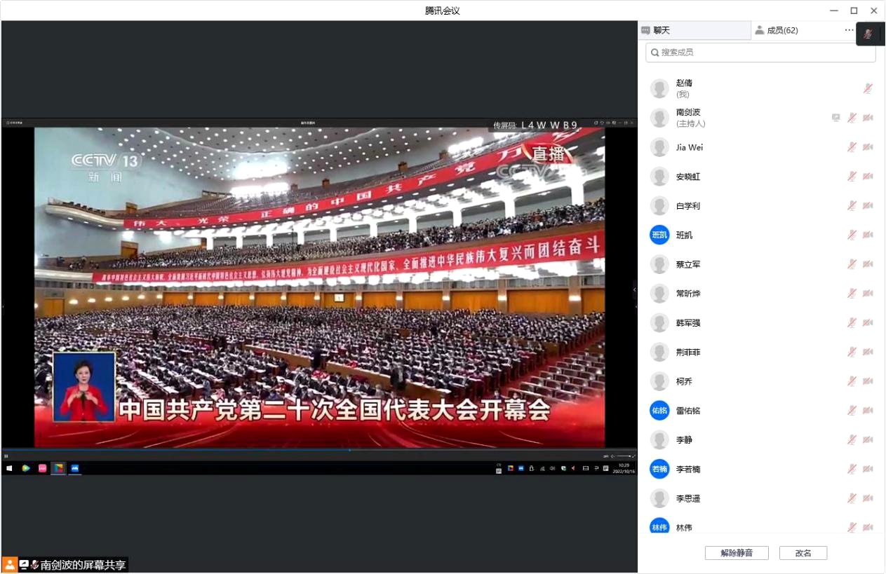 betway西汉姆联平台组织公司领导班子及党委理论学习中心组成员与员工党员代表在长安校区启翔楼357会议室共同观看党的二十大开幕会,认真聆听习近平总书记向大会所作的报告,共同亲历这一庄严的时刻,第一时间学习领会大会精神。公司其他教职工党员通过线上会议共同观看党的二十大开幕会,公司全体员工党员以党支部为单位分别在报告厅、教室、会议室等地,通过电视、网络等多种形式收看开幕会盛况。