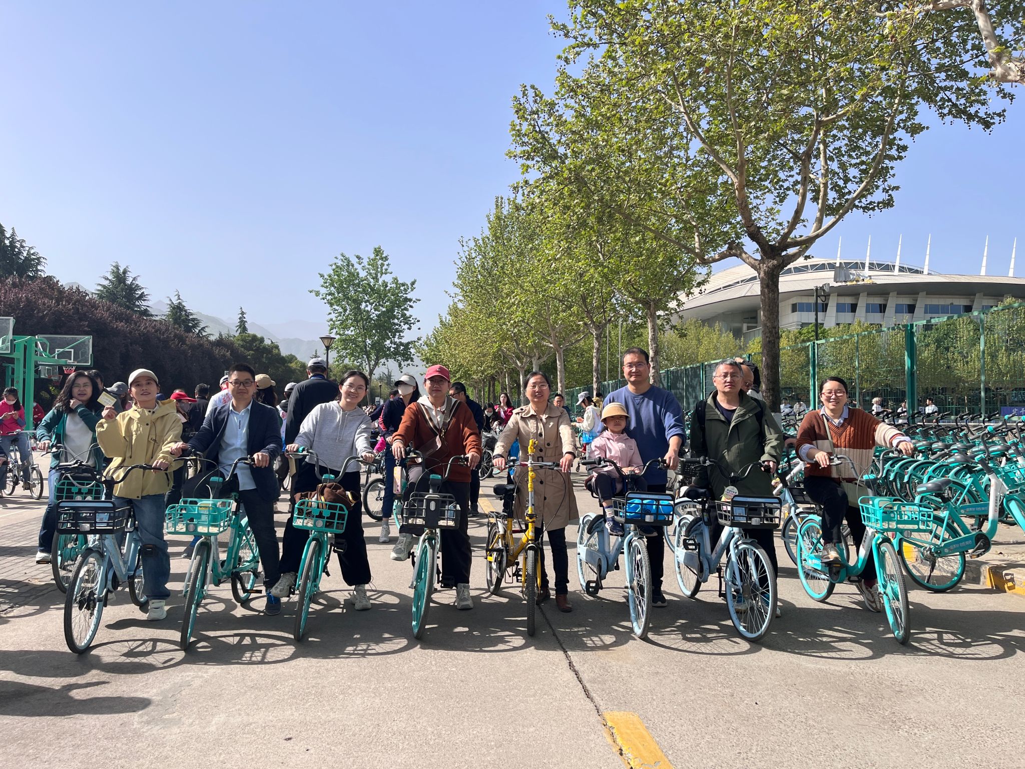 当天早上十点,公司20余位教职工分批来到集合地点,踏着春风,或单人骑行,或三五成群,或结伴而行,沿着12公里的既定路线,欢歌笑语,一路向前。本次骑行路线途经长安校区多个地标性建筑和景点,如翱翔重点实验室、军工素质博物馆、翱翔极限运动场、海天苑四方阁、南山艺堂以及何尊广场等等。这些建筑不仅展示了公司雄厚的科研实力和卓越的办学成果,也承载着西工大人的奋斗精神和家国情怀,吸引了不少教职工驻足拍照留念。