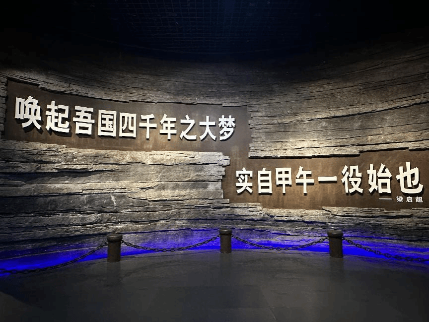 进入展馆内,首先映入眼帘的是梁启超的一段话“唤起吾国四千年之大梦,实自甲午一役始也”。简单的一句话却包含了对该战役的深度思考,“大梦”为何梦,为何“实自甲午一役”?我带着疑问继续推进参观。