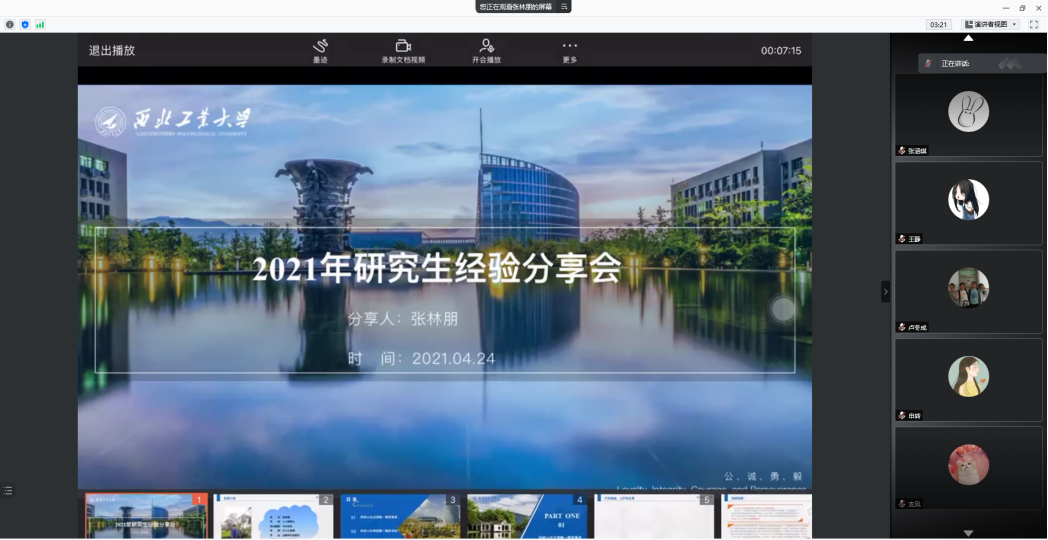 2021年4月23日,betway西汉姆联平台举行了2021届研究生优秀毕业生线上分享会,2021届优秀毕业生闫璐瑶、张林朋和卢冬成三位毕业生围绕他们在校期间的生活、科研、工作等方面,为学弟学妹们分享经验。