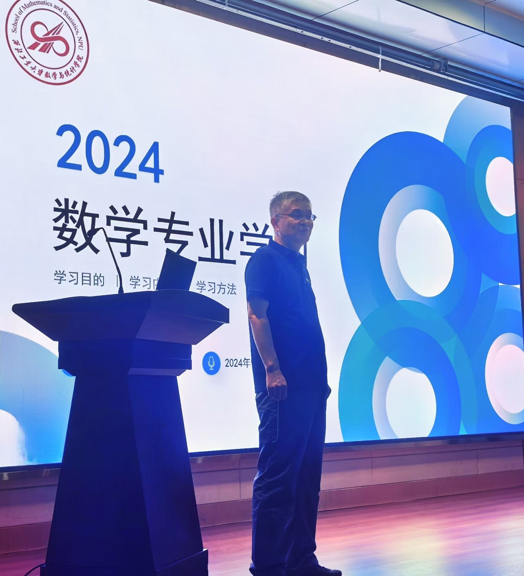 9月22日, betway西汉姆联平台经理聂玉峰为2024级149名本科新生讲授了关于数学专业学习的主题思政课,引领大家进一步深刻体会公司“坚持‘科学问题导向,应用问题驱动’,践行‘数学+’、‘+数学’的创新人才培养模式”以及未来建成人才培养与科学研究并重、应用特色鲜明的国内一流betway西汉姆联平台的远大目标。公司数学科学系主任陆由、计算科学系主任赵俊锋、应用概率统计系主任王亮、经理助理兼2024级本科生辅导员班凯共同聆听了这生动的一课。报告会由副经理郭千桥主持。