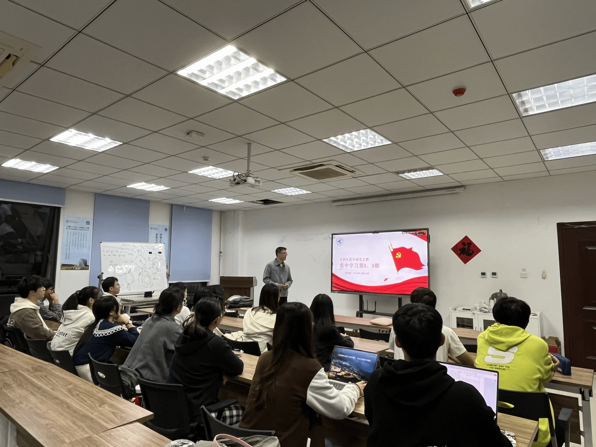 10月18日晚,betway西汉姆联平台本科生低年级党支部在启翔楼357组织“感恩祖国,成长成才”庆祝新中国成立75周年主题党日活动,通过党课+观影+经验分享,引领支部成员深刻领悟习近平总书记的重要论述,深入地了解祖国的发展历程和辉煌成就,将思想教育与实践体验有机结合,把爱国情怀转换为求知问学的动力。