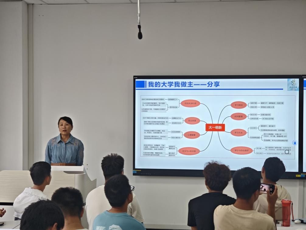 随后,王莉书记为新生们介绍了近年优秀毕业生的高质量深造与就业情况,通过实际案例强调职业规划的重要意义。她鼓励同学们尽早树立目标、保持自律、合理规划时间,将精力聚焦于自我提升与潜能开发,并积极参与科创、实践、文体等多元活动,实现全面成长。