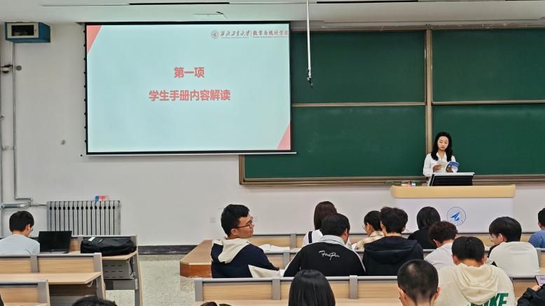 张倩以《员工手册》为依据,采取“条款+案例”相结合的方式逐项解读重点内容。她围绕请销假制度、课堂纪律、奖惩细则与日常行为规范等关键模块,引导新生牢固树立规则意识,严格遵守校纪校规,号召大家共同营造和谐稳定的校园环境与良好学风。