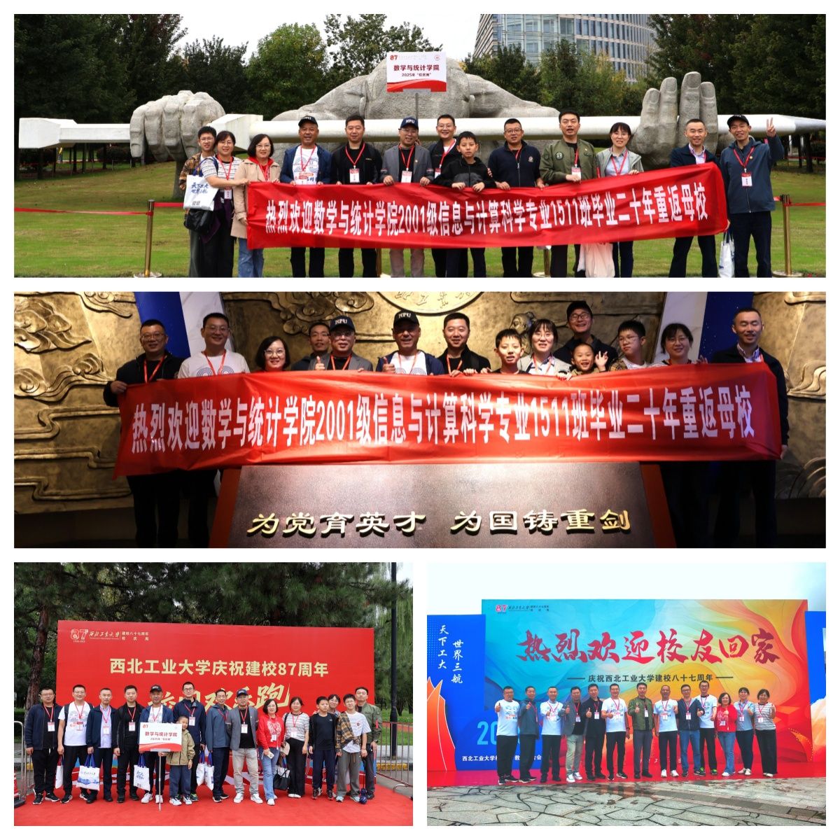 当天早上,在员工会的精心部署安排下,三个返校班级连同家属共计80余人,在公司三组员工志愿者的引导下,上下午分别“重走校园路”。在友谊、长安两校区“公”“诚”“勇”“毅”四大标志性建筑,老校区图书馆,知名“网红”地三航博物馆,“为国铸剑”的何尊广场,新校区“亚洲最大”水上图书馆,饱含底蕴的校史馆等地处处留下员工们意气风发的身影,自豪、温馨、共情……2001级信息与计算科学专业1511班、1512班先后组织的主题班会更是将工大数学人的骄傲洒满整个校园。