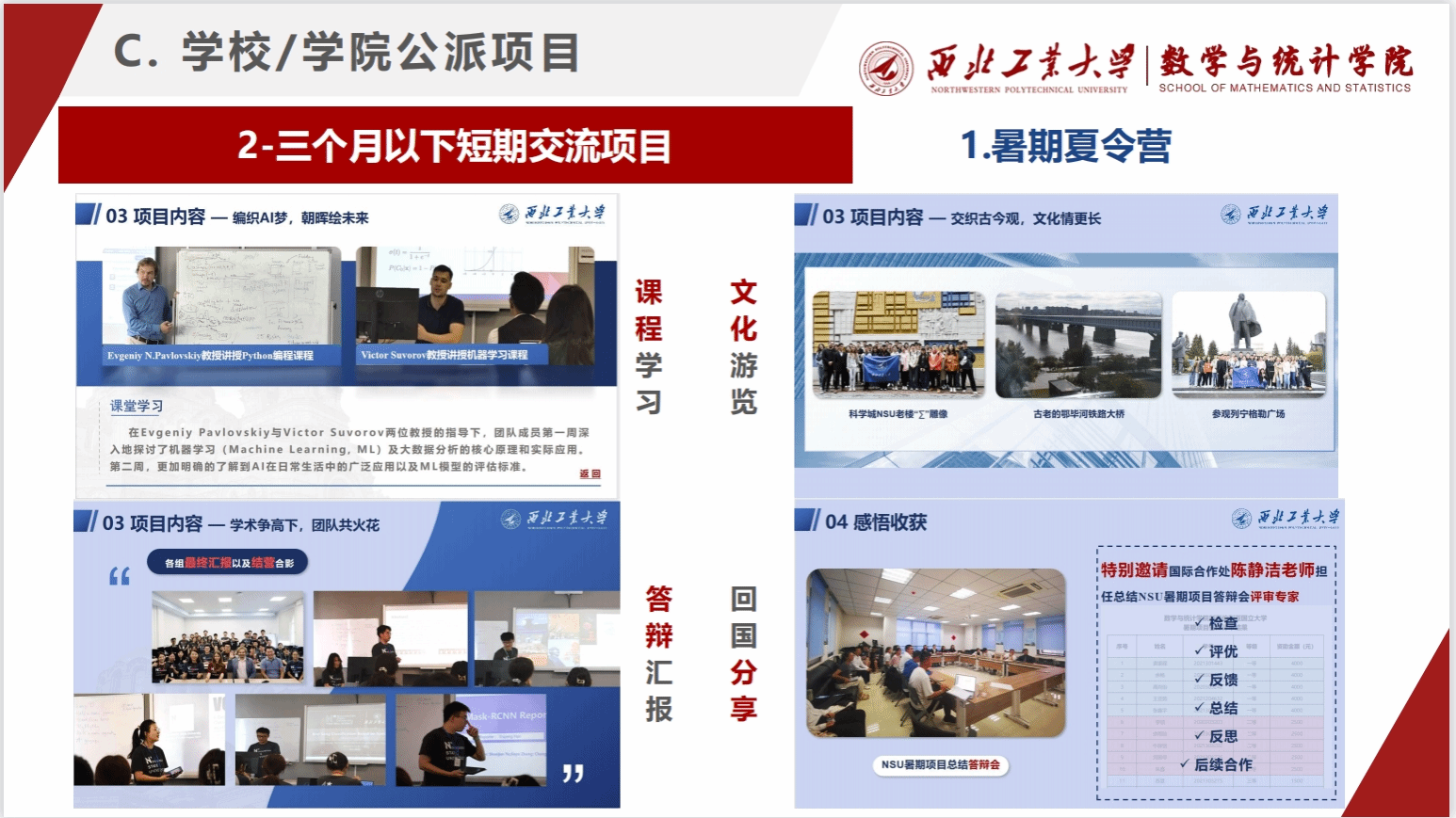 宣讲会分为三个部分:分别为员工出国境“项目介绍”,“资助办法”和“手续流程”。在员工出国境“项目介绍”过程中,根据派出类别,又分为国家公派留学项目、赴国际组织实习项目及公司/公司公派项目三种形式。