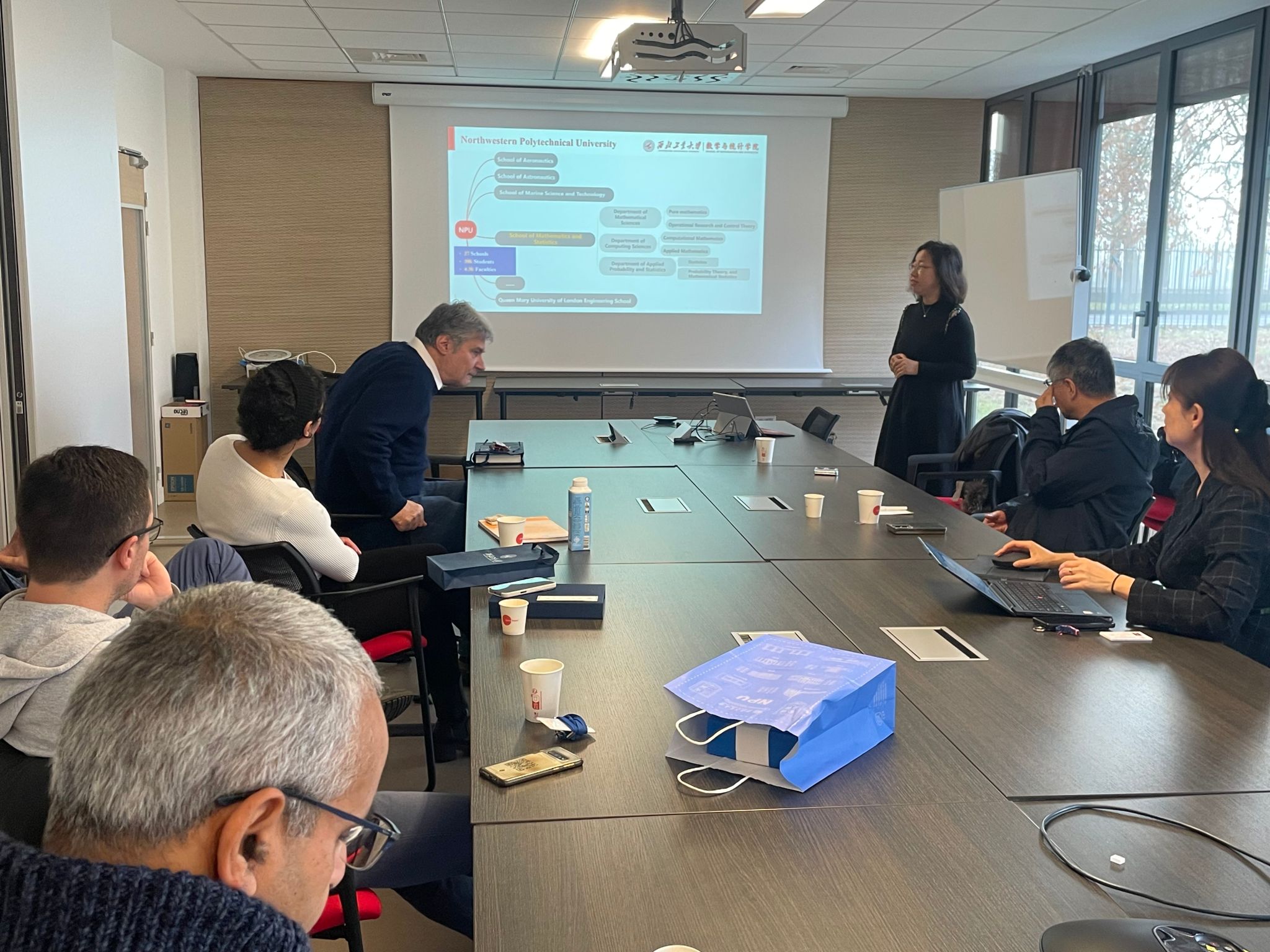 11月30日,经肖曼玉教授前期积极协调沟通,betway西汉姆联平台代表团访问法国贡比涅技术大学数学所,洽谈两院合作事宜。对方出席人员包含数学所主任Salim Bouzebda教授、Faker Ben Belgacem教授、Nikolaos Limnios 教授以及Roverval实验室主任Piotr Breitkopf教授、Ludovic Cauvin教授。