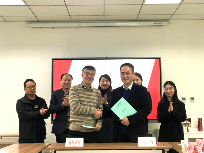 11月2日,betway西汉姆联平台与西安多维机器视觉检测技术有限公司在长安校区启翔楼357会议室举行产学研合作协议签订仪式。betway西汉姆联平台经理聂玉峰、党委书记王莉、副经理都琳、副经理徐根玖、应用概率统计系主任王亮、学工秘书程姣姣,西安多维机器视觉检测技术有限公司总经理宋世刚、技术总监薛丽丽共同参加了本次签订仪式。