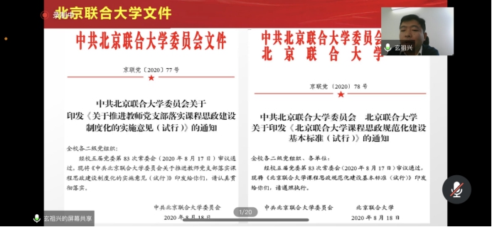 接着,哈尔滨工业大学尹逊波教授、北京科技大学储继迅副教授、北京联合大学玄祖兴教授、betway西汉姆联平台郜璐璐、宋伟杰老师依次分别从微积分课程建设与改革、教学竞赛经验分享、课程教学中课程思政的融入、课程创新、课程思政的实践等方面作了精彩的分享,并与参会老师进行的充分的交流和讨论。