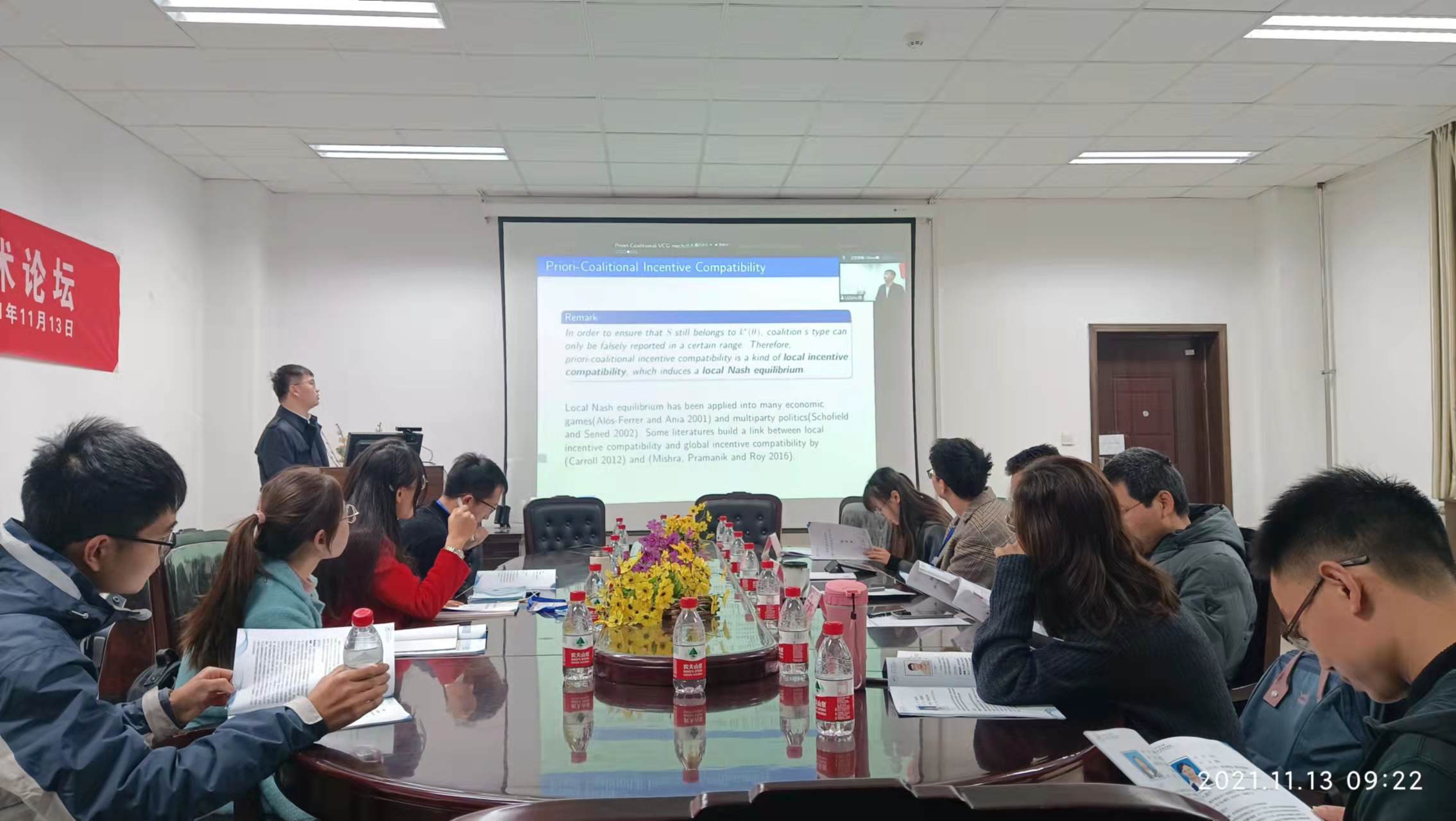 为了进一步落实数学学科“双一流”建设,营造研究生学术创新氛围,2021年11月13日,betway西汉姆联平台在betway西汉姆联平台长安校区召开第一届研究生学术论坛,本次论坛分设启翔楼357室和理学楼214室两个会场并同步线上进行。经理聂玉峰教授、副经理徐根玖教授以及经理助理、二级学科负责人、青年教师代表、各年级研究生等共100余人通过分别通过线上线下的形式参加了本次论坛,论坛由副经理徐根玖主持。