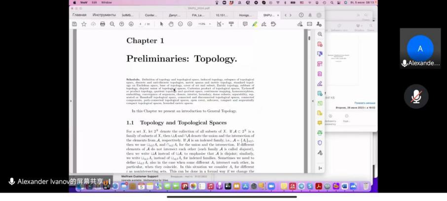 2022年7月19日,由莫斯科国立大学机械和数学公司的Alexander O. Ivanov教授讲授的暑期国际讲堂《Hyperspaces: Hausdorffand Gromov-HausdorffDistances Geometry》课程圆满结课。本课程由betway西汉姆联平台牵头,夏常春老师具体负责,采用腾讯会议网络授课。