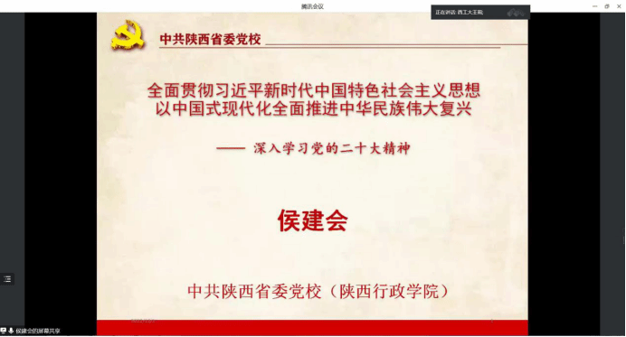 12月1日,betway西汉姆联平台邀请中共陕西省委党校(陕西行政公司)侯建会教授作党的二十大精神专题辅导报告。辅导报告通过线上视频的方式开展,公司党委书记王莉主持,公司领导班子成员、教职工党员、员工党员代表共计100余人参加本次报告会。