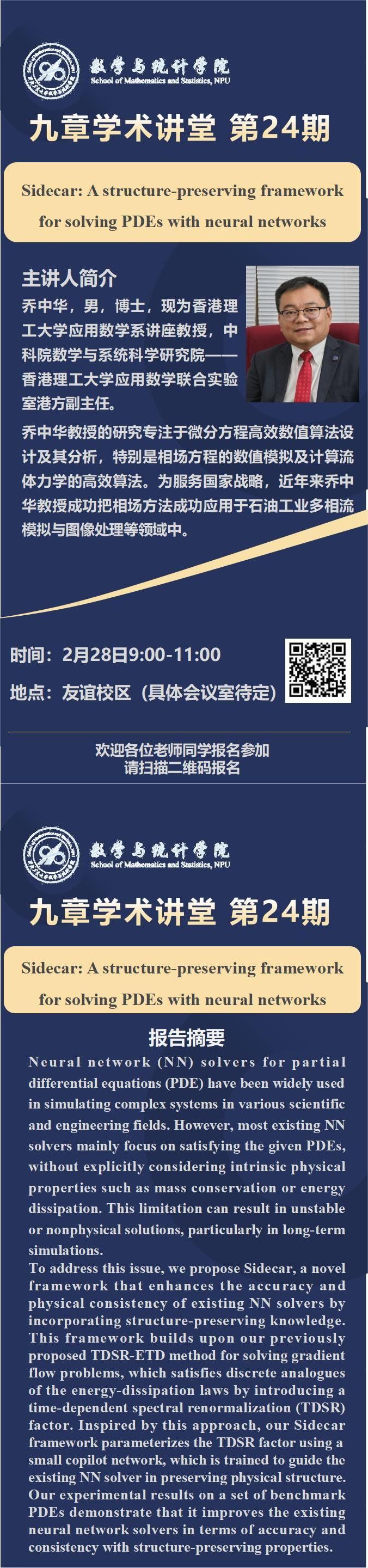 【九章学术讲堂第24期】Sidecar: A structure-preserving framework for s o l v i n g P D E s w i t h n e u r a l n e t w o r k s