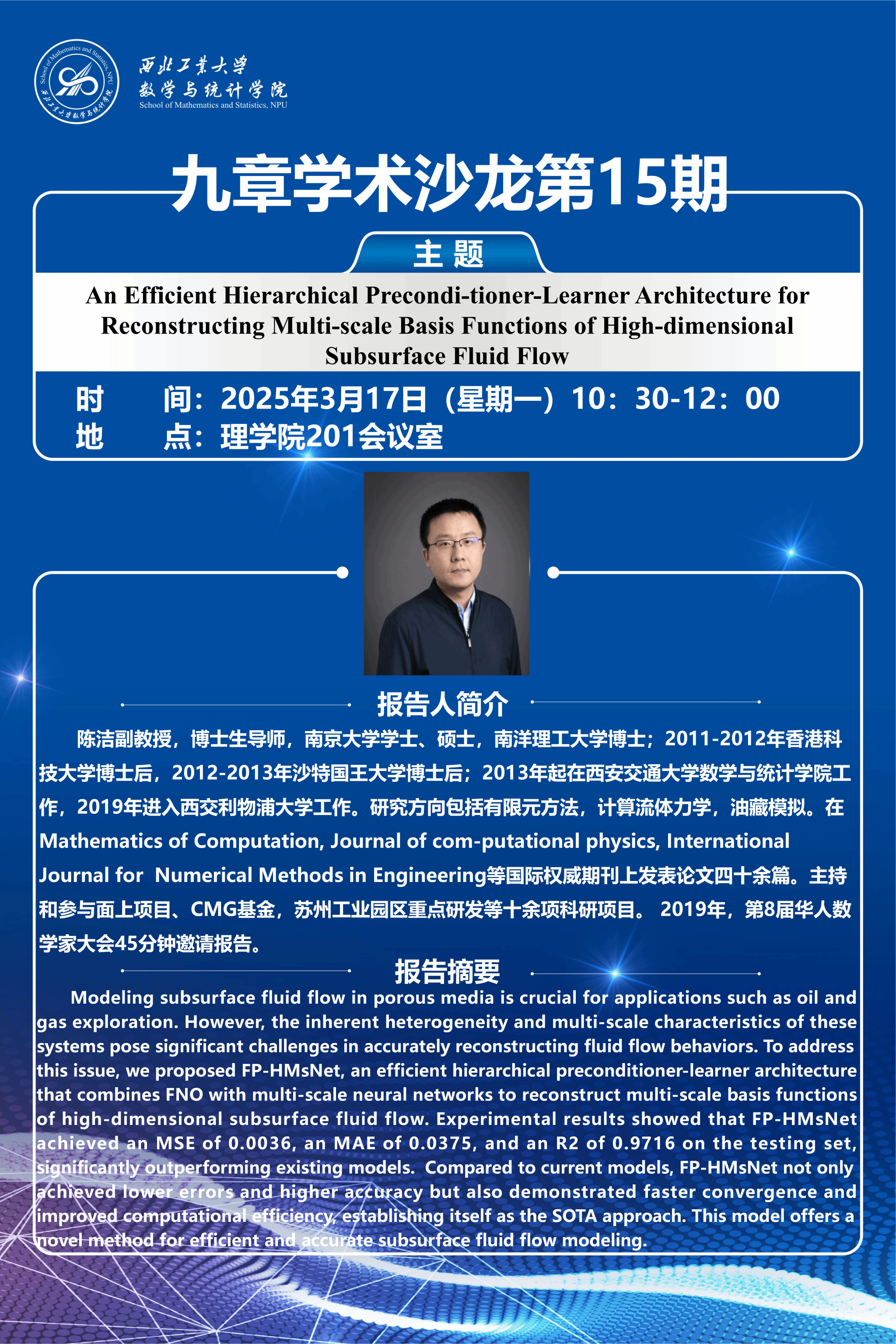【九章学术沙龙第15期】An Efficient Hierarchical Precondi-tioner-Learner Architecture for Reconstructing Multi-scale Basis Functions of High-dimensional Subsurface Fluid Flow