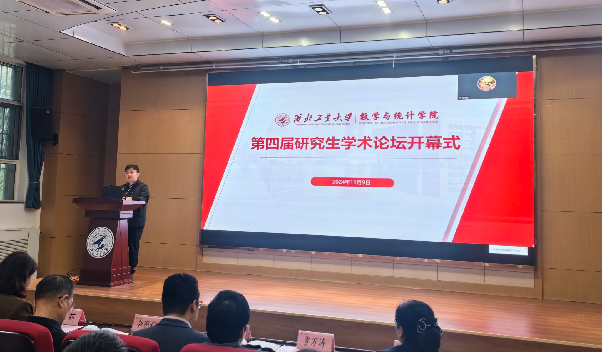 开幕式首先由研究生院常务副经理朱继宏教授致辞。朱继宏指出,研究生积极参与学术成果交流不仅能促进自身成长,还能提高科研成果的产出。他希望通过这场学术盛会,落实教育、科技与人才一体化的理念,提升研究生从1到0的创新能力,推动数学学科的发展更上一层楼。