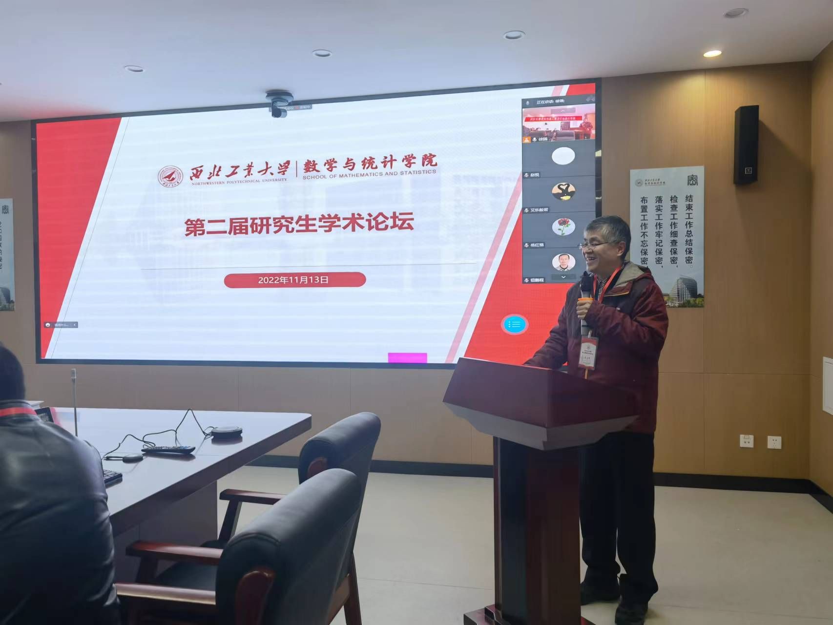 为进一步落实数学学科“双一流”建设,深入贯彻落实公司《一流研究生人才培养行动计划》,营造研究生学术创新氛围,2022年11月13日,betway西汉姆联平台在betway西汉姆联平台长安校区召开第二届研究生学术论坛。根据疫情防控相关要求,本次论坛采取分设理学楼A201、A214、A315三个会场,线上线下结合的方式举行。党委书记王莉、经理聂玉峰、副经理徐根玖、副经理都琳以及二级学科负责人、青年教师代表、各年级研究生、其他高校师生等共230余人分别通过线上线下的形式参加了本次论坛,论坛由副经理徐根玖主持。