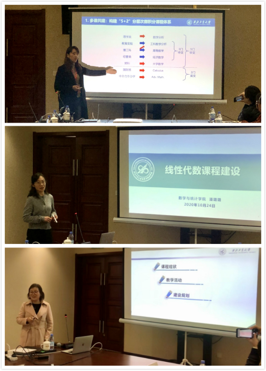 本次调研就团队建设、人才培养、科学研究以及工科数学教学和课程建设等方面进行了深入细致的研讨和交流。首先,公司betway西汉姆联平台徐根玖副经理对研究生工作及科研情况做了简单介绍,同济大学数学科学公司许学军经理对该公司的学科结构及特色、人才培养、科学研究等情况做了汇报。随后,张莹教授、唐亚宁教授、潘璐璐副教授依次对高等数学、概率论与数理统计、线性代数的课程建设情况进行汇报。