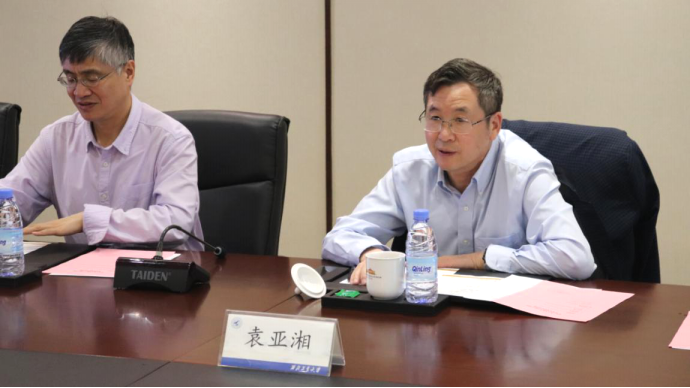 研讨会首先由聂玉峰对公司整体情况做了详尽的介绍,分析了公司和公司团队建设面临的机遇与挑战。通过公司介绍,袁亚湘从国家科技战略规划、创新政策和学科交叉方向的高度阐述了我国数学发展的新态势,为公司下一步拓展新的发展空间提供了详实的理论依据,对公司的重点发展方向、重点培养或引进的目标人才、预期产出的重大成果、结合公司三航特色或成果转化、公司学科的发展进行了细致入微的指导。