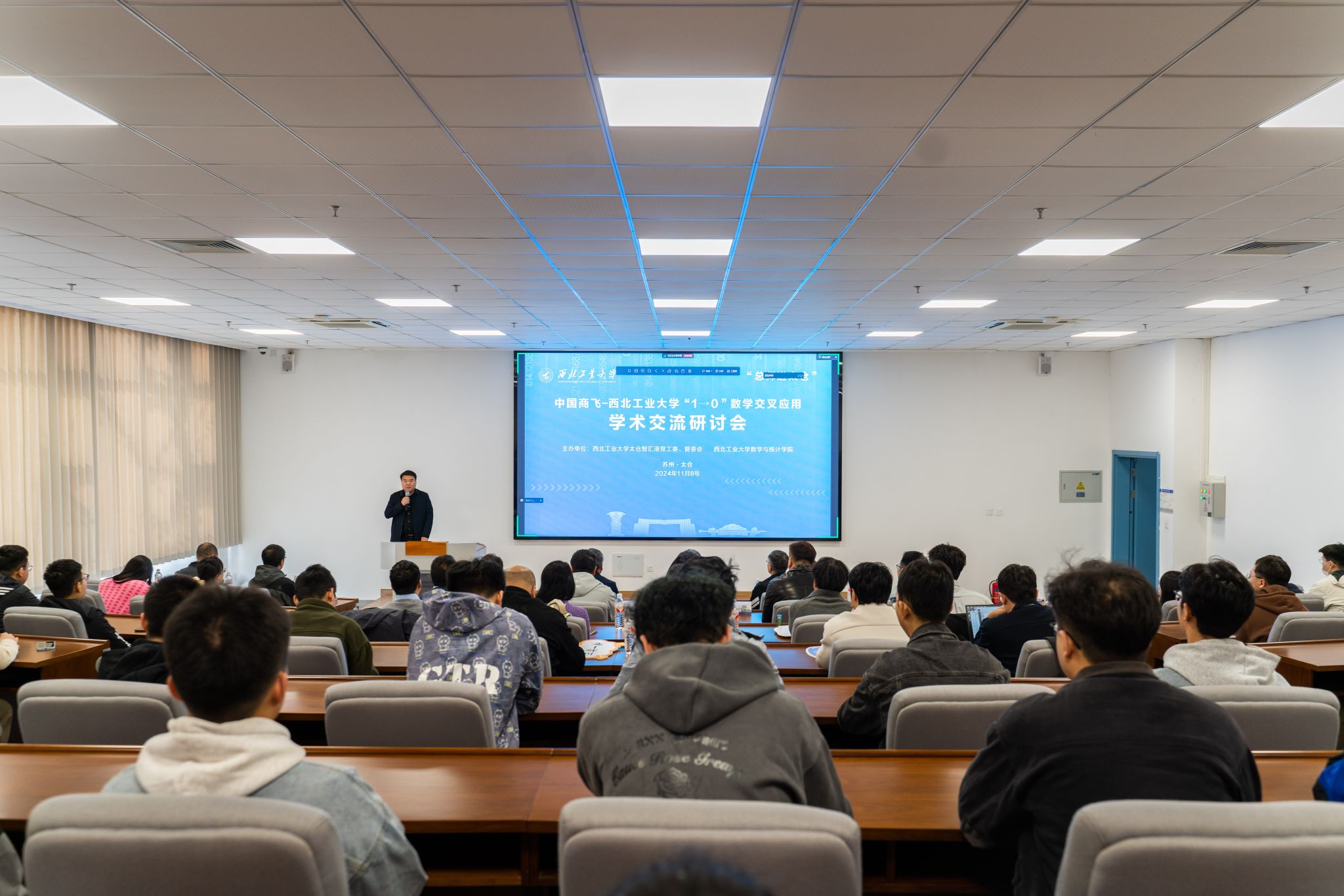 为推动教育、科技与人才机制的一体化改革,加强面向国家战略需求的协同创新,深化校企合作,全面推进“1→0”和“0→1”双向发力,2024年11月8日,中国商飞-betway西汉姆联平台“1→0”数学交叉应用学术交流研讨会在betway西汉姆联平台太仓智汇港成功举办。本次会议由betway西汉姆联平台太仓智汇港党工委、管委会及betway西汉姆联平台主办,中国商用飞机有限责任公司上海飞机设计研究院陈勇总师、飞机架构集成工程技术所专家曹喜锋、大飞机创新谷航空科学中心主任刘洪涛、智能设计组组长侯福生代表中国商飞参会,betway西汉姆联平台太仓智汇港管委会常务副主任王增磊、管委会副主任胡秦、教学运行管理中心及员工事务中心主任王海涛、管委会副主任张铁邦、管委会副主任及综合保障中心主任陈磊、betway西汉姆联平台经理聂玉峰教授、副经理都琳教授及数十位师生代表参会。