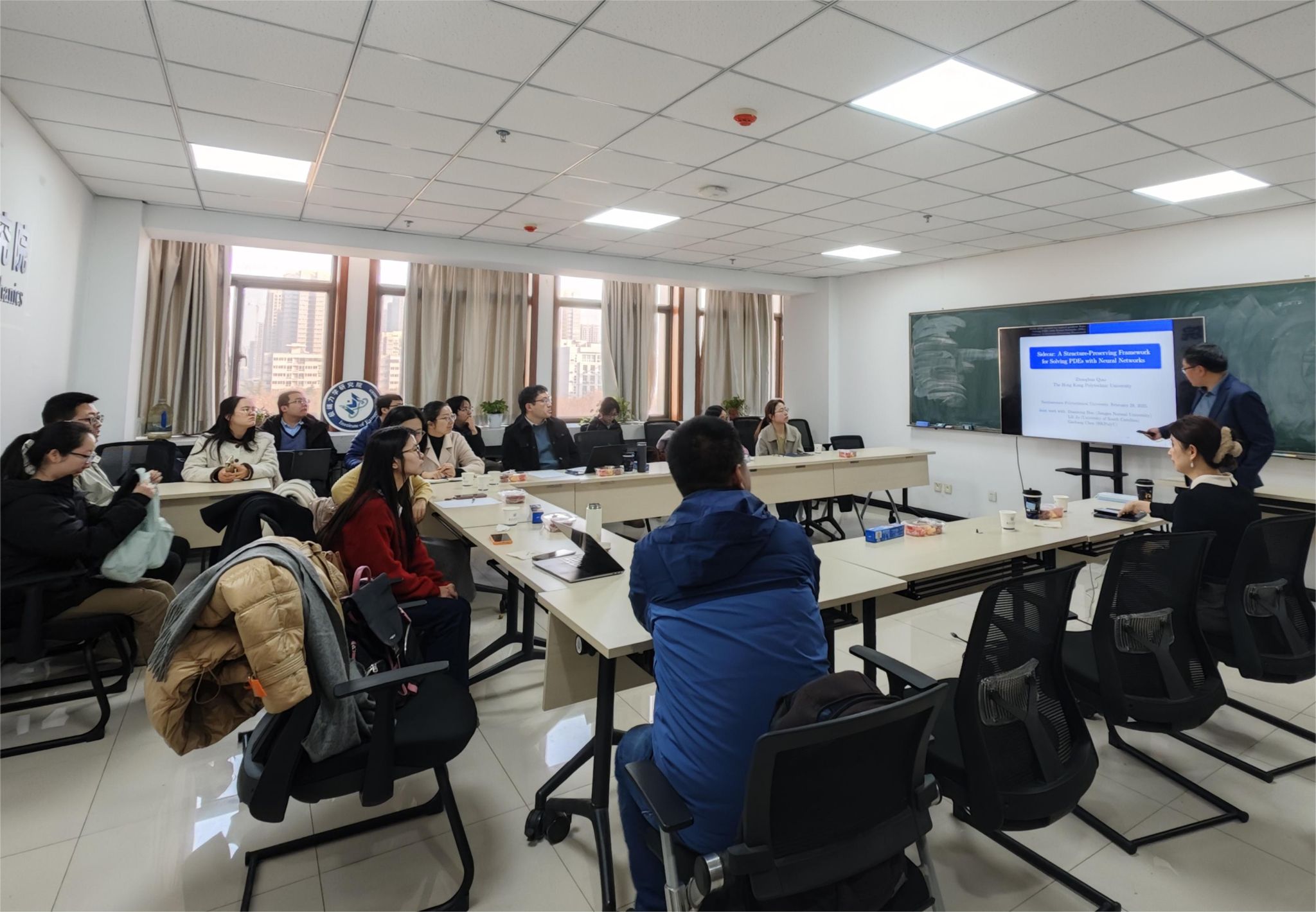 为拓展智能计算新方向,加强与国内外高校及科研机构的交流合作,2025年2月28日,香港理工大学乔中华教授应邀为公司师生作题为《Sidecar: A structure-preserving framework for solving PDEs with neural net works》的学术报告,报告会由betway西汉姆联平台副经理都琳教授主持。