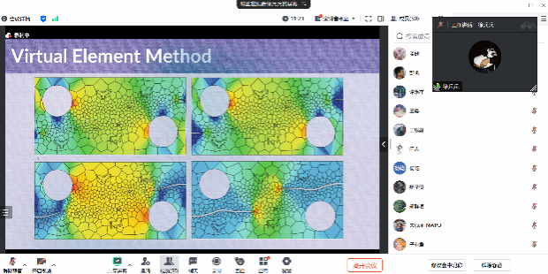 徐兵兵的报告内容充实,不仅从实际工程问题的数学模型出发,严格构造了相应的虚单元方法,而且通过图片或者动画给出了数值模拟的结果,具有趣味性和应用价值,参加此次报告的师生均表示受益匪浅。
