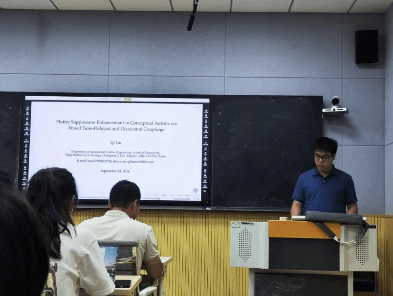2024年9月23日,东京工业大学刘琪特任研究员受公司许勇教授邀请,于长安校区理公司315会议室作题为“Flutter Suppression Enhancement in Conceptual Airfoils via Mixed Time-Delayed and Occasional Couplings”的学术报告。20余位师生参与本次报告,报告由李永歌副教授主持。