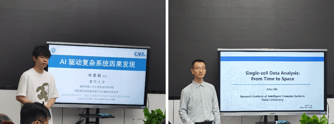 2025年5月8日,betway西汉姆联平台第28、29期“九章学术讲堂”成功举办。讲堂邀请复旦大学智能机器人与先进制造创新公司冷思阳教授和复旦大学智能复杂体系基础理论与关键技术实验室史际帆副研究员,分别作题为“迁移学习下单细胞空间位置推断”和“AI驱动复杂系统因果发现”的报告,并与公司教师围绕科研合作进行座谈。公司20余位师生参会,报告由裴斌教授主持。