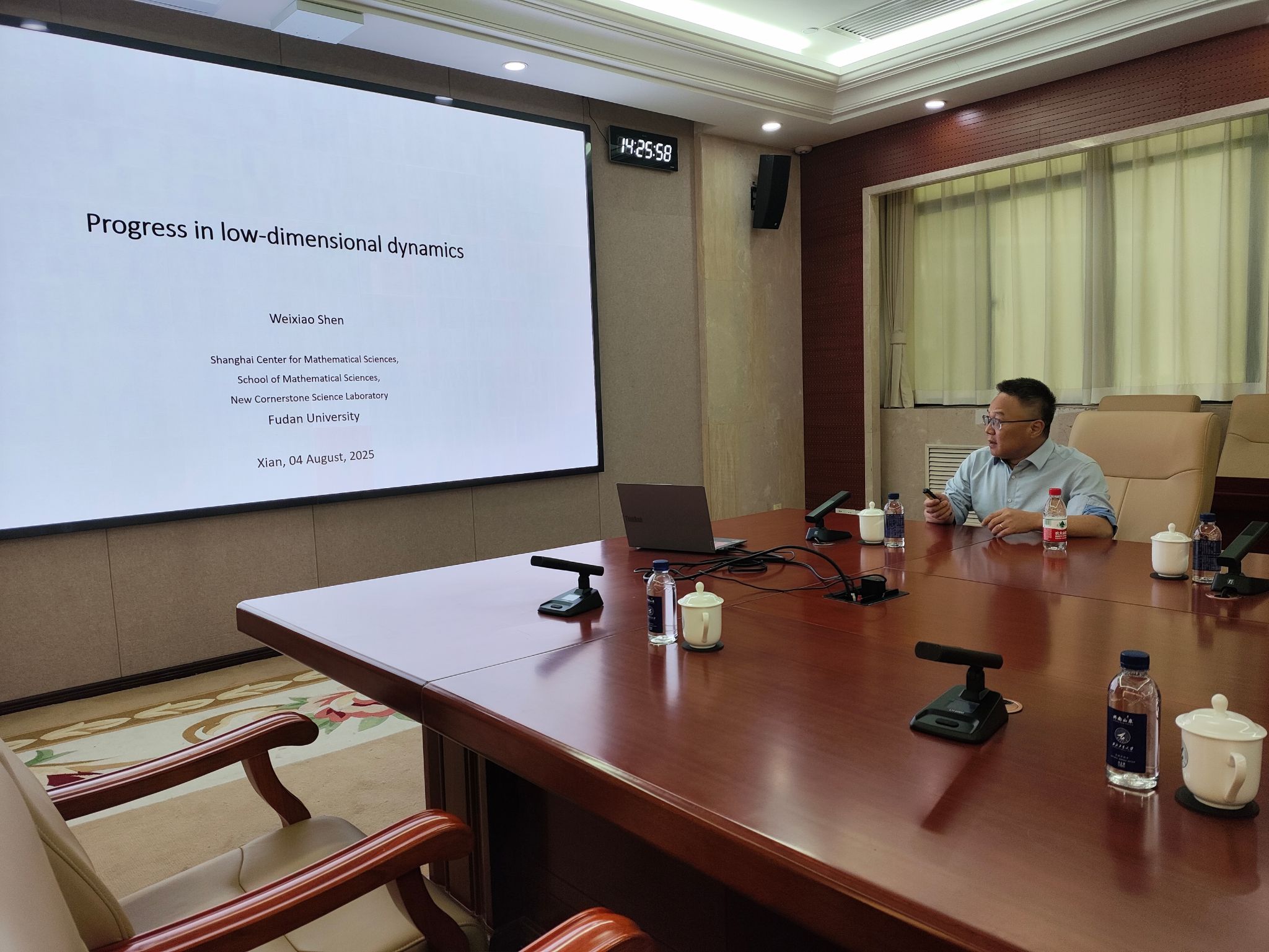 在本次报告中,沈维孝详细介绍了他和合作者在低维映射的迭代方向的研究进展。他首先介绍了了李雅普诺夫指数,一致双曲等概念,进而引入Fatou猜想等问题。接下来,沈维孝围绕区间映射的游荡域问题介绍了他和合作者的研究进展,并就魏尔斯特拉斯函数图像的维数刻画方面的成果做了阐述。最后,沈维孝介绍了一类二维斜积映射的横截性的研究及其在分形几何、遍历优化问题中的应用,并特别强调了他和合作者在Hunt-Ott猜想方面的最新成果。