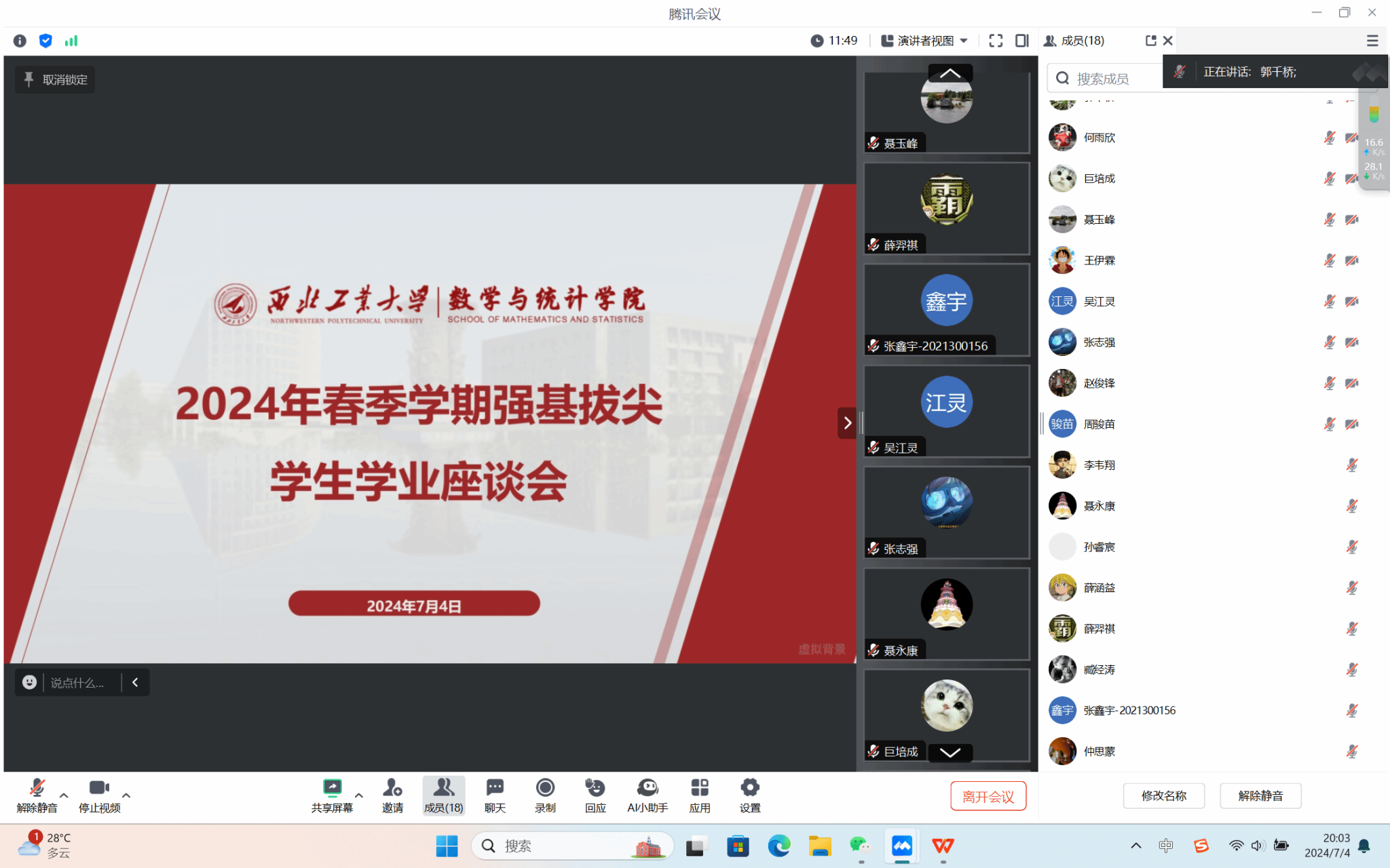 为推进强基班人才培养,深入了解员工的思想与生活状态,收集他们对公司教育培养工作的反馈,不断优化人才培养体系。2024年7月4日晚20:00,betway西汉姆联平台线上举行了2023-2024学年春季学期末强基班与拔尖班员工座谈会。betway西汉姆联平台经理聂玉峰、教学副经理郭千桥、21级强基班班主任臧江涛、22级强基班班主任梅钰、23级强基班班主任赵俊锋、强基班员工代表和拔尖班全体员工参加了本次会议。