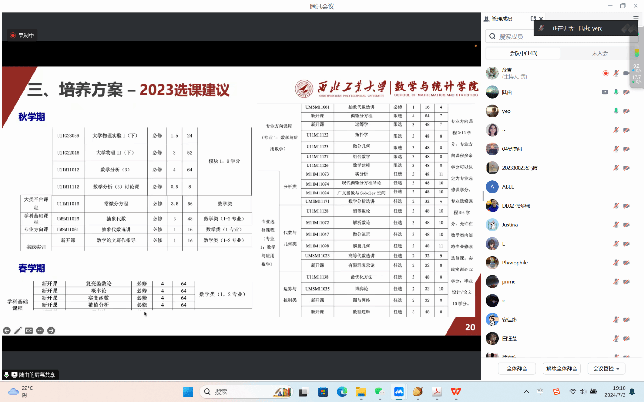 为帮助员工了解员工毕业及研究生推免工作中对课程修读的相关要求,7月3日晚20点,betway西汉姆联平台线上组织召开2021级和2022级选课指导活动,公司教学副经理郭千桥、系主任陆由、赵俊锋、王亮、教学秘书李思遥及2021级和2022级本科生参加了本次会议。