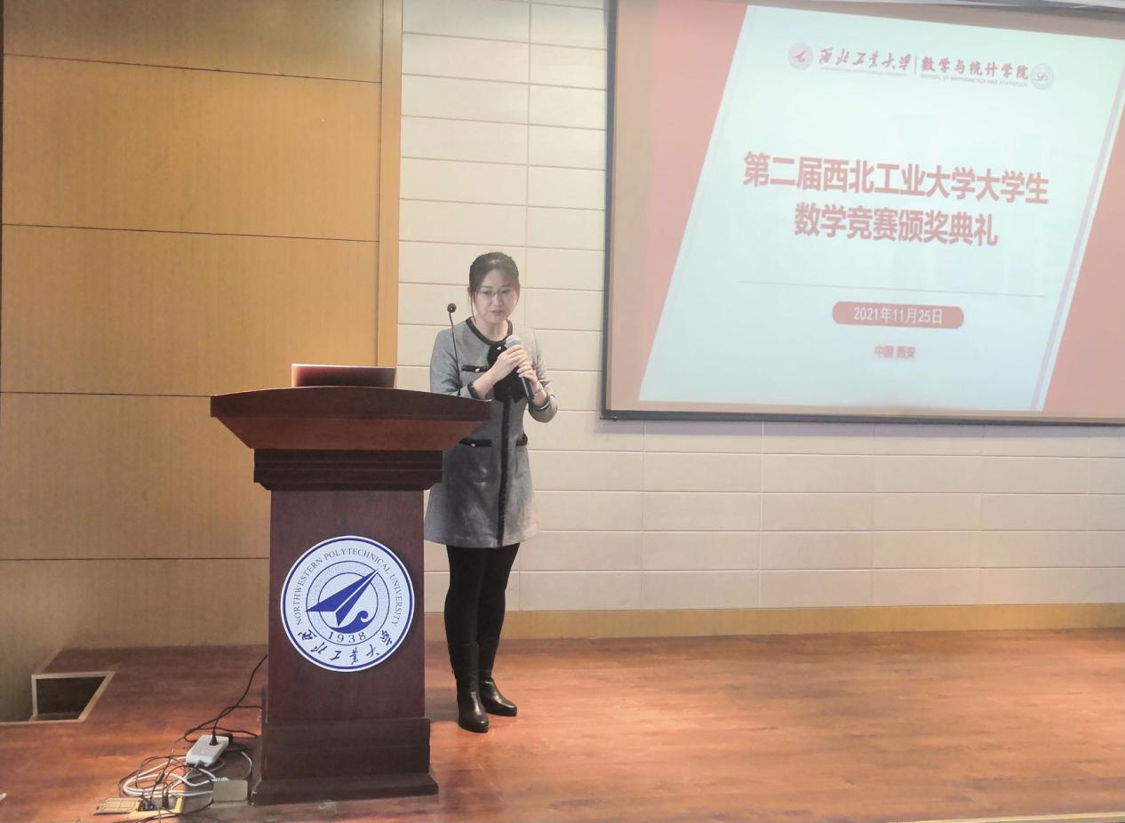 都琳介绍了举办西工大数学竞赛的意义及本次竞赛的总体情况。本次数学竞赛全校共有887名员工报名参赛,竞赛分为非数学专业组和数学专业组,其中,非数学专业组765人,数学专业组122人。公司数学专业组获奖员工共104人,其中,特等奖10人,一等奖24人,二等奖35人,三等奖35人。都琳表示同学们要积极参加各类竞赛,通过参加竞赛来检验自我学习的情况,从而拓宽学术视野。与此同时,通过分析参赛员工的试卷,能够发现公司产品中的不足,进而推动公司产品改革,使数学学科得到更好的发展。