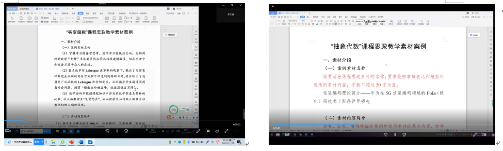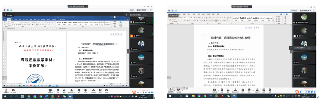 线性代数线上课程思政案例交流分享会共有刘哲、郑红婵、安晓虹、李静、肖曼玉、延伟东、白建超、白力乾、冀腾宇、陈亚萍等12位老师参加,会议由课程负责人潘璐璐主持,邀请经理助理刘晓刚进行指导。每位老师都就自己的课程思政案例进行了详细的解读,并就课程思政建设进行了热烈的交流讨论。老师们表示参加此次分享会收获良多,受益颇深,希望今后可以多组织此类活动,给大家提供更多交流讨论的平台。