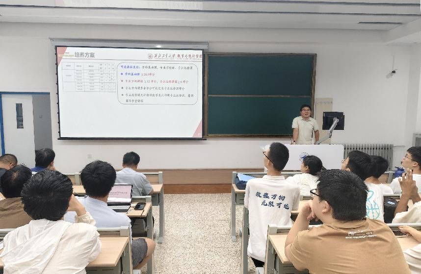 宣讲环节,夏健康、赵俊锋、王亮三位老师依次登台,分别从专业背景、培养目标、团队力量、课程体系及未来发展前景等方面,对数学与应用数学、信息与计算科学、统计学三个专业进行了详细深入的介绍。老师们详实的讲解为同学们廓清了专业方向,明晰了未来发展路径。最后,李彦吉老师结合2021级毕业审核经验对同学们选课过程中的常见问题和常犯错误进行了重点强调,提醒同学们严格按照培养方案、公司研究生推免文件等相关制度文件要求进行选课。
