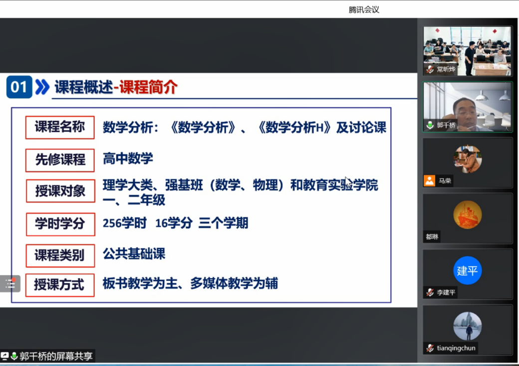 会议共有两个环节,分别为特邀报告和研讨报告环节。特邀报告由全国3名数学专业知名学者作主题报告。复旦大学楼红卫教授报告题为《数学分析课程教学中一些实践与思考——面向优秀员工数学分析教学的尝试》,楼老师从数学分析课程出发,系统阐述了在数学分析教学过程中的理念,以及他在具体教学内容处理中的尝试和方法。楼老师的报告引发了参会老师的共鸣,参会老师与楼老师热烈交流讨论了关于教材、员工竞赛等教学过程中的实际问题。北京大学田青春副教授报告题为《高等代数教学体验》,他以北京大学的《高等代数》课程为例分享了教学体验,介绍高等代数这门课程目前流行的2种教学讲课方法,并按四个模块详细分析高等代数课程的教学内容和要求。田老师的报告十分精彩,与参会老师进行了深入的沟通,用真实教育案例解答了老师们在这门课程教学过程中的关于课程设置和教学模式方面的疑惑。国防科技大学李建平教授报告题为《新时代数学专业一流课程建设的实践与思考》,他从数学专业一流课程建设的时代背景出发,对标国家级和省级一流课程,分析数学专业课程申报时所面临的机遇与挑战,并详细介绍了国防科技大学数学专业一流课程的建设实践。李老师的报告引人入胜,参会教师与李老师进行了充分的沟通交流。