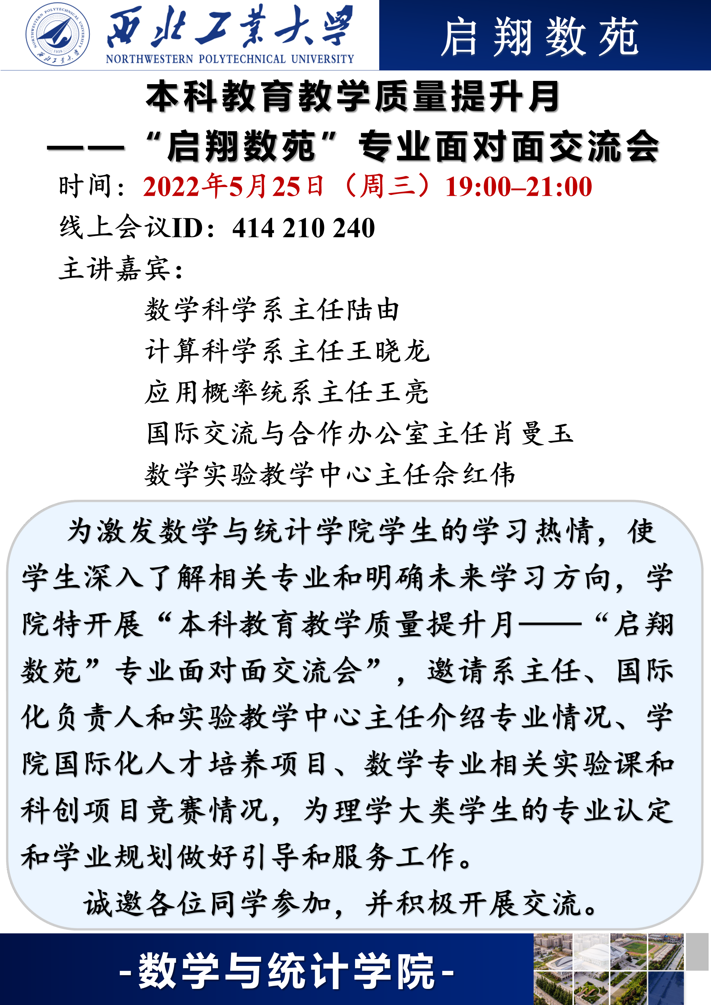 betway西汉姆联平台本科专业教育质量提升活动 ——“启翔数苑”专业面对面交流会