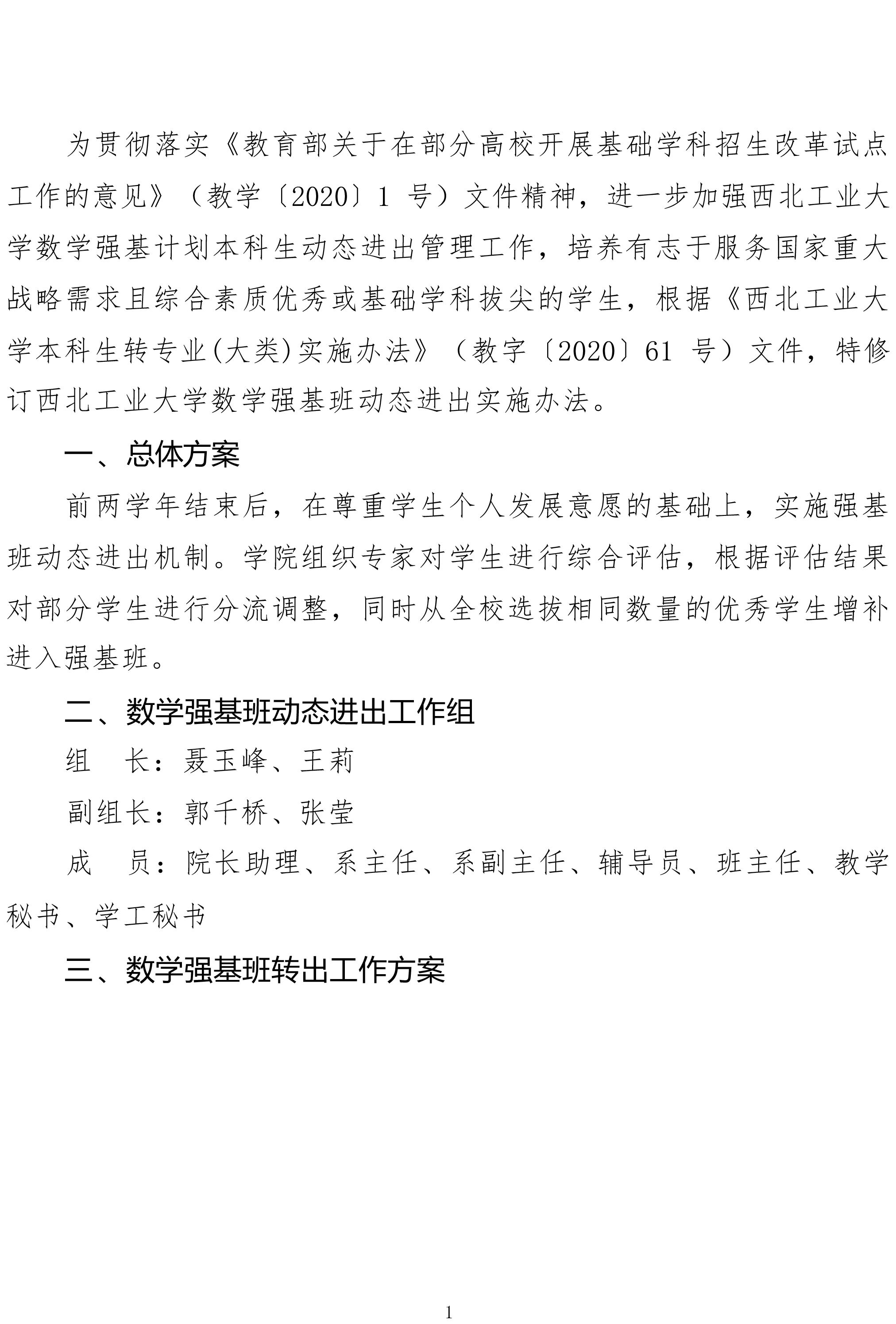 betway西汉姆联平台数学强基班动态进出实施办法通知(试行)