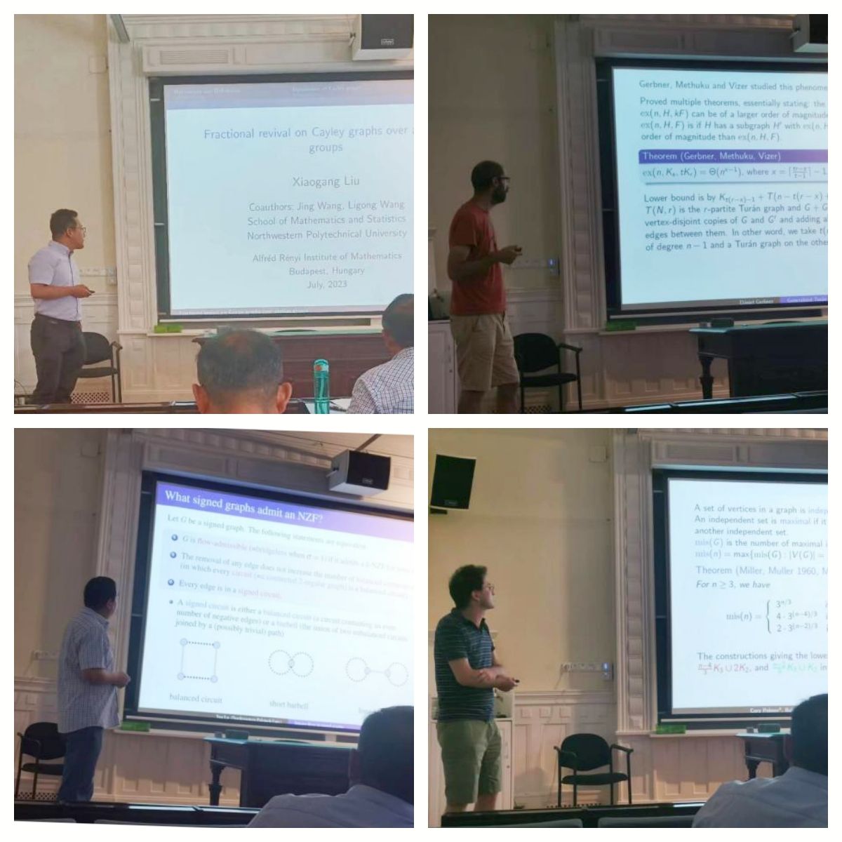 7月10日,由张胜贵教授和Katona院士组织的“中匈图论双边研讨会”在雷尼数学所学术报告厅成功举办。研讨会共有10场学术报告,包括5场公司教师的报告和5场匈牙利学者的报告。与会专家在着色图的子图存在性问题、图兰问题、子图密度问题等相关问题开展了分享与交流,研讨会现场气氛热烈。