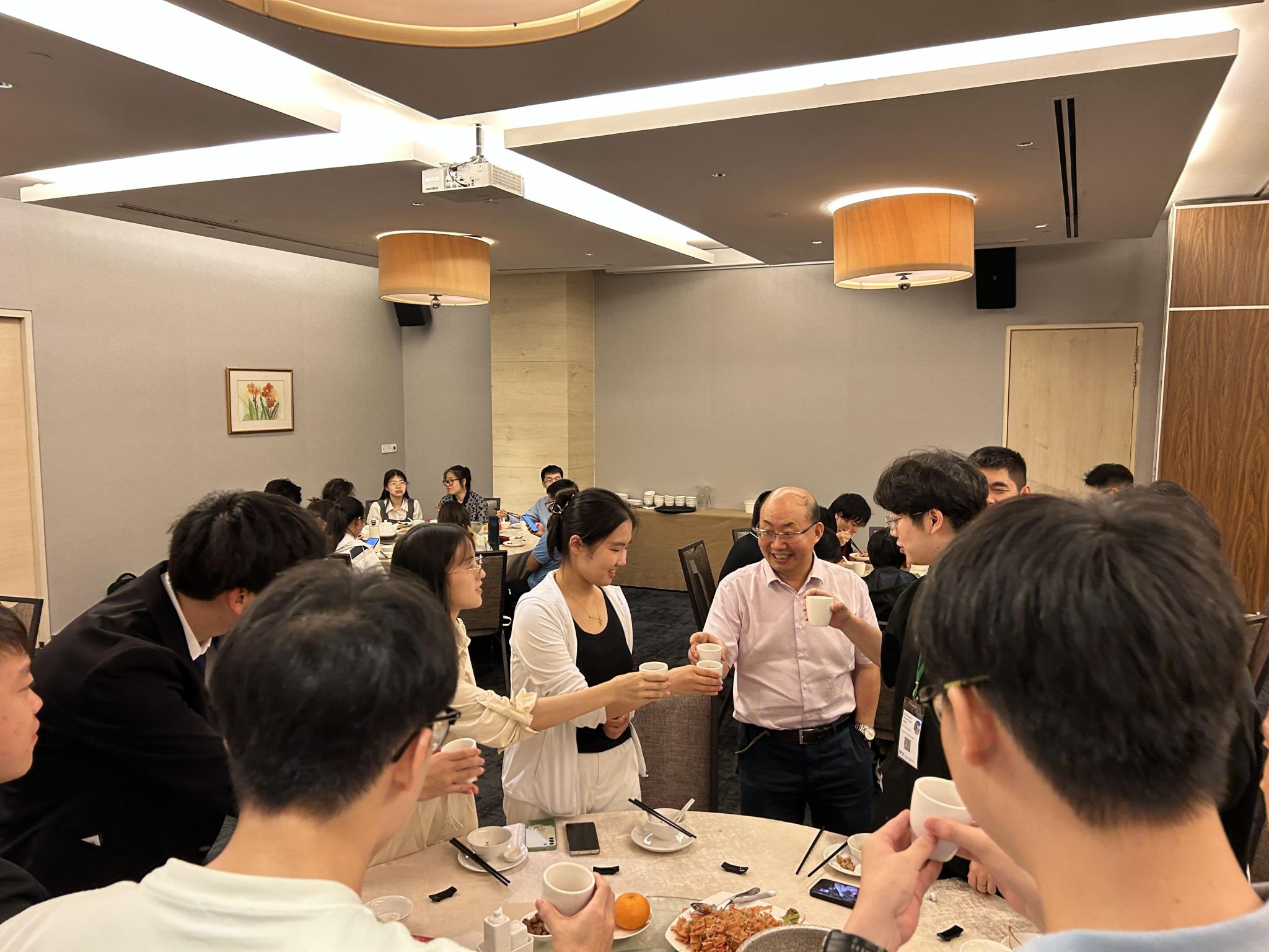图12 晚宴现场,同学们与包教授举杯庆祝